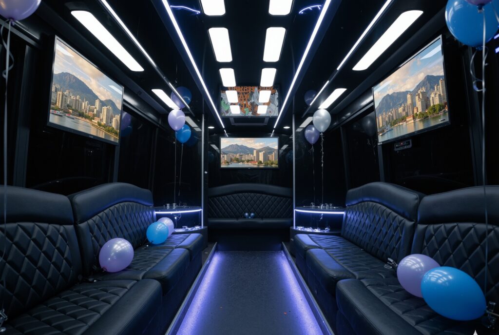 The Vancouver Limousine Party fleet at Hermes Travel isn’t one-size-fits-all. Some groups want the classic stretch limo vibe. Others prefer something that moves like a lounge. The Mercedes Sprinter Van fits ten to fourteen people with plenty of room to relax, talk, and crank the music. Bigger crowd? The party buses have lighting that feels like you’ve walked into a club on wheels, plus sound systems that don’t quit.